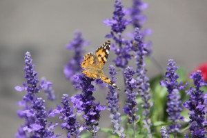 ブルーサルビアには、蝶も集まっております(キマダラヒカゲ?!違うかも・・・)