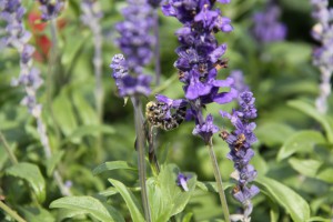 ブルーサルビアには、蝶も集まっております(キマダラヒカゲ?!違うかも・・・)