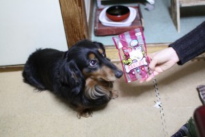 先日、飼い主さんから、実家のわんちゃんにと、ワンコ用のおやつを頂いたのです!