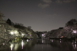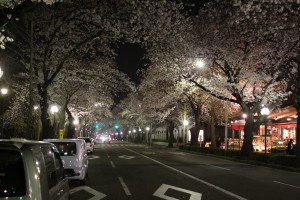 昨日のことですが、翌日の天気がかんばしくないため桜の見ごろが最後ということで、夜桜を見に出かけました。