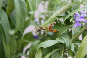 最近、病院看板下の花壇に居座っているカマキリ君。